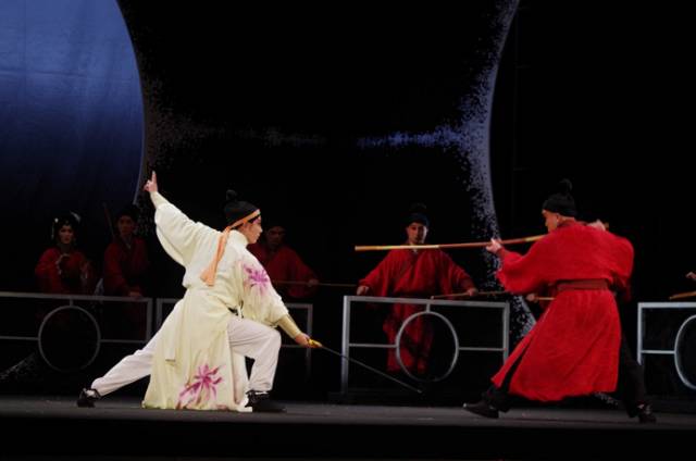 不仅如此,剧中的几处武戏段落也时施夏明的舞台首秀。如果说后面持剑而歌的段落还有《长生殿·酒楼》的影子,那么前面误杀心上人兄长的一段武戏则完全没有前作可以参照,而这段出现在第二出里的打斗段落也很好的体现了从未演过武戏的施夏明在幕后所下的功夫。