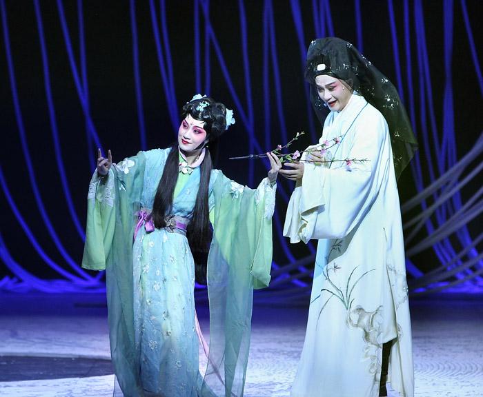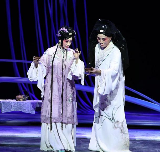 余彬是著名昆曲表演艺术家张静娴的大弟子,受其亲传,在多部传统戏、新编大戏中出演主要角色,塑造了多个个性鲜明的人物形象。特别是张静娴的代表作《班昭》,余彬挑梁传承版,对于跨年龄表演并不陌生。在《春江花月夜》中,她饰演的辛夷要从16岁、26岁直至演到66岁,依然是个不小挑战。如果说班昭是有史记载的才女,人物塑造自有源头可寻,而辛夷是有林下之风的大家闺秀,是全新的虚构角色,这意味着不能绝对依赖传统戏的程式手段。在余彬看来,行当技艺是一种辅助,情感的宣泄才是最主要的。作为张若虚穿越死生命运中的关键人物,如何解读、处理辛夷对张若虚的情感呢?余彬说:“这种情不能说是爱情,但却是经得起时间考验的,是超过爱情和友情之上的一种情感。他们彼此内心有颤动,但并没有卿卿我我,对当代人来说有情感上的呼应,这种呼应是胜于许多传统戏的。”