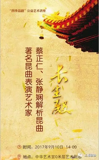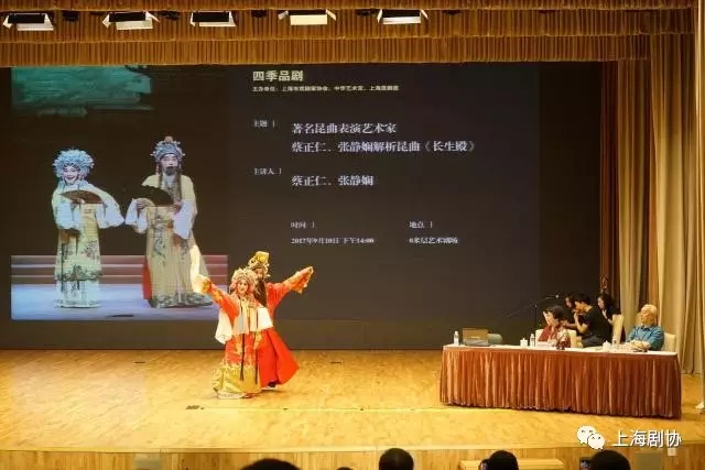 9月10日下午,由上海市戏剧家协会和中华艺术宫共同主办的品牌活动“四季品剧”公益艺术讲座,邀请到了著名昆曲表演艺术家蔡正仁和张静娴,他们携手走进中华艺术宫为中华传统文化爱好者们解析全本版昆曲《长生殿》,并由学生罗晨雪、倪徐浩两位优秀青年演员现场展示。