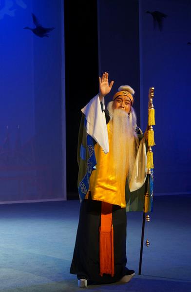 四个龙套,不化妆,无头套,身着黑布长衫,却功能多多:或千军万马,或部下仆从,检场的也是他们,反正除了苏武、李陵,剩下的活都是他们干了。偶有伴唱帮腔,烘托气氛。素面出场,一点不抢戏,无论画面、音声,都只突出苏、李二位。