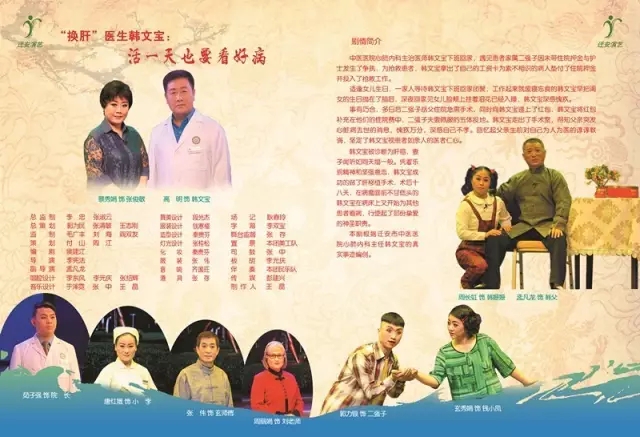 剧目情况:《百姓医生》是迁安市艺术团演艺有限责任公司根据迁安市中医医院心肺科主任韩文宝为原型,在迁安市委市政府、市文广新局、迁安市卫计局、迁安市中医医院的大力支持下,创作的反映医疗卫生行业的先进人物和事迹的评剧剧目。该剧被作为重点剧目选送至第十届中国评剧艺术节上进行展演《百姓医生》。