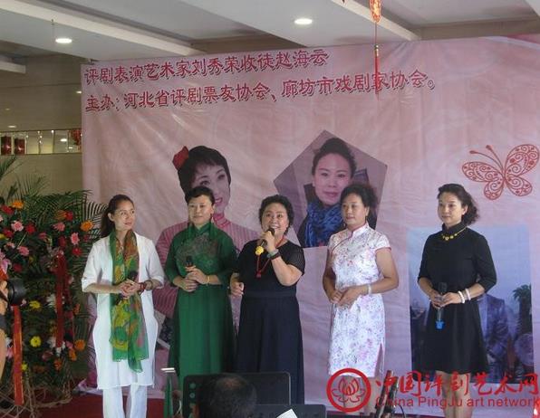 刘秀荣是评剧非物质文化遗产项目传承人,是我国评剧一代宗师新凤霞先生的得意弟子。赵海云这个名子听起来陌生,但她的网名“兰馨”在当代网络评剧界可说是大名鼎鼎。仪式中赵海云向师傅刘秀荣行了叩拜大礼,献花、互赠礼物等。师徒步二人相拥后分别发表了感言。到会的师姐妹也发言表示祝贺。