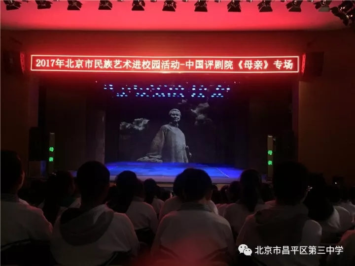 2017年10月31日,北京市民族艺术进校园活动,迎来了中国评剧院《母亲》专场。下午三中初一初二200名师生,来到位于昌平的演艺学院,高水平的演出团队,专业的场地,给师生带来了一场视觉盛宴。