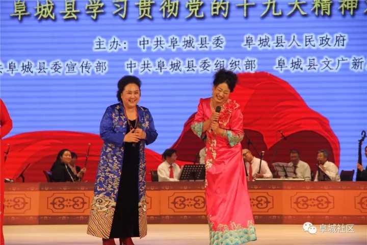 2017年10月31日晚,阜城县群众艺术中心首次启用,荀慧生大剧院,灯光璀璨,座无虚席,戏曲铿锵庆盛会,众志成城跟党走,《阜城县学习贯彻党的十九大精神戏曲晚会》在这里拉开序幕,全国著名评剧表演艺术家刘秀荣率弟子亲临现场登台表演,为阜城人民奉献了一场新时代文化盛宴。