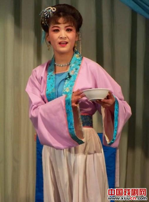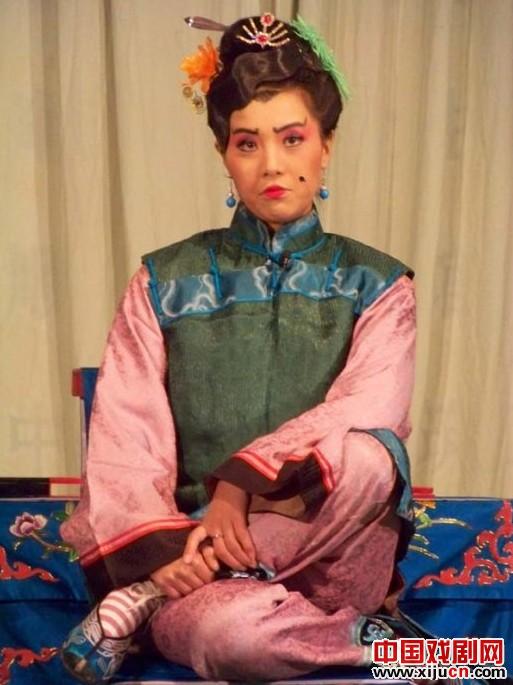 该团优秀青年演员小灵玉擅演大青衣行当,塑造过许多这种角色,舞台经验丰富、大气自然,本次两场演出她均自毁形象,分别饰演恶婆婆和姑妈角色,两者均为彩旦行当。小灵玉把人见人恨、恶毒的婆婆表现的淋漓尽致,表情和动作都非常夸张,极具喜剧效果。她饰演的姑妈角色应该算半个彩旦,姑妈泼辣、母老虎,但是古道热肠、抱打不平。她和另一个由姜红饰演的恶婆婆展开了智慧与勇气的较量。小灵玉在两出戏中一个被人惩治,一个是她把别人惩治。每个人物都非常鲜活,个性鲜明。小灵玉非但表演上乘,而且演唱高亢有力、悦耳动听。