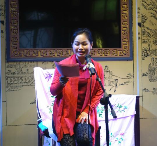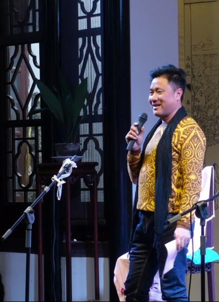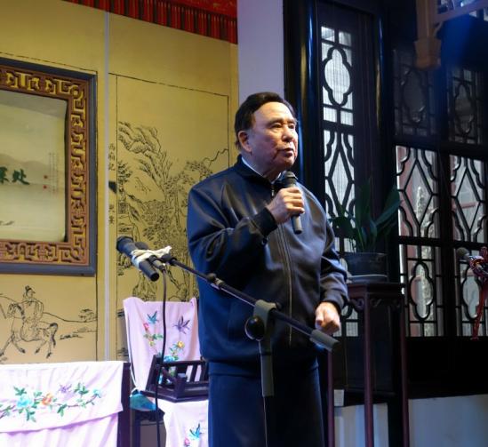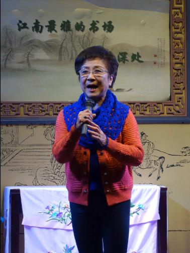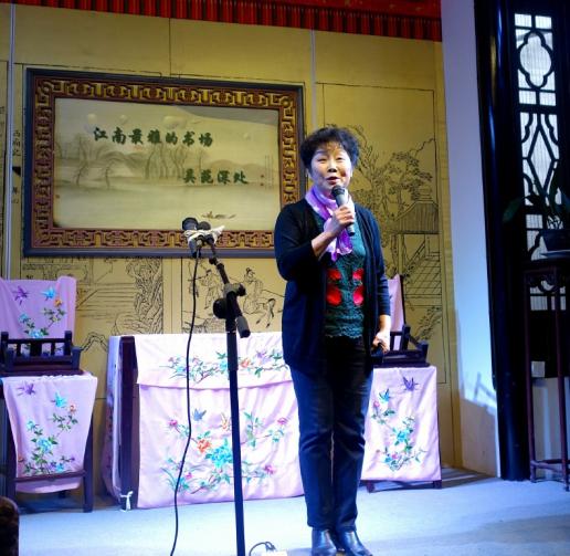 “雨打梨花深闭门,燕泥已尽落花尘”,学会会员杨玉瑞女士的一曲薛调开篇《请宴》先声夺人,优美的唱词和明快流畅的唱腔相得益彰,让大家得到一次很好的艺术享受;接下来是俞家贤先生的沈调选曲《珍珠塔.婆媳相会》,他天生嗓音哑糯,唱来韵味极浓;黄国强先生自小热爱评弹,不仅弹得一手好“家生”,且做得一手好三弦、琵琶,由此结识了评弹界不少名家,唱功深厚,能唱不少冷门开篇,本次为大家弹唱的周调选曲《玉蜻蜓.志贞描容》果然是字正腔圆、沉稳飘逸;金慧玲女士虽然不是专业演员,但是从小就读于苏州评弹学校,为其业余评弹生涯打下了坚实的基础,本次为大家演唱的是弹词选曲《珍珠塔.抢功劳》,周云瑞唱腔,伴奏顾之芬老师与她是评校同学,两人称得上是总角之交,如今都已年逾古稀,再次合作配合依旧十分默契,赢得台下掌声一片;接下来是评弹小组唱俞调开篇《枫桥夜泊》,演唱者是学会会员姚萌(现电视书场导演)、倪红、顾奕,伴奏是顾之芬、金慧玲两位老师,三人自去年开始拜顾之芬老师为师学唱评弹,在顾老师的悉心教导下今天终于实现首次登台,虽然表演尚不成熟,但认真的态度还是得到台下观众的热情支持;高龙泉是东渚戏曲评弹积极分子,平时不是唱戏就是听书,孟建珍是他的老搭档,两人在在业余圈子颇有名气,本次为大家带来了锡剧清唱《珍珠塔.前园会》,演唱表演都十分到位;侯调素有评弹中的“花腔女高音”美誉,唱腔清如碧水、细如毫发、高入云际,本次由上海业余评弹响档华琦为大家带来的一曲侯调开篇《莺莺拜月》,唱来声情并茂,赢得台下掌声连连;徐红是前辈名家徐丽仙老师的女儿,一曲丽调选曲《罗汉钱》婉转动人,深得丽调神韵;顾之芬老师是评弹界的女官,曾任苏州评弹学校副校长,桃李满天下,退休后仍积极投身评弹教育事业、发挥余热,业余还参加了京剧票房,本次为大家带来了一段京剧清唱《天女散花》,唱来有板有眼、清越高亢、精气神十足,台下听客不由得陶醉其中,不时爆发出掌声、喝彩声;本次特别感谢的是专程从上海赶来演出的陈卫伯老师,他原是一名评话演员,是著名评话艺术家金声伯老先生的师弟,后改演“单口独脚戏”,名噪一时,如今85岁高龄的他依旧精神矍铄、神采奕奕,这次为大家表演了一段海派清口,依旧“噱头势”十足,台下笑声不断;接下来是继字辈昆曲名丑林继凡先生表演的昆曲一技《丑角贺春》,……;文菊明是苏州业余评弹名票,一辈子喜爱评弹,擅唱香香调、快蒋调,本次运用快蒋调弹唱了一曲《双珠凤.为千金》,唱词一气呵成,干净利落,很好的诠释了书中人物的感情发展;陈丽鸣是评弹界中的又一位女官,曾任吴县评弹团团长,严雪亭唯一女门生,所起葛三姑、扬州太太等角色深木三分,业余爱好京剧,本次反串一段京剧清唱《霸王别姬》,也是梅派经典唱段,短短几句唱词,行腔端庄沉稳,气度不凡;华觉平是苏州广播书场资深编辑,可以说在座不少人都是从小听他主持的广播书场长大的,他是吴子安高足,多才多艺,京剧、沪剧都能唱,还会一手太极拳,本次为大家奉上一曲沪剧清唱《为你打开一扇窗》,取得了良好的现场效果;最后的压轴大戏是由徐丽仙关门弟子程健老先生为大家带来的丽调弹词开篇《闹春曲》,他跟随徐丽仙多年,深得先生真传,这只开篇平时不常听到,应时应景,赢得台下掌声一片。