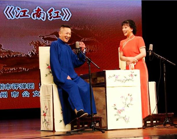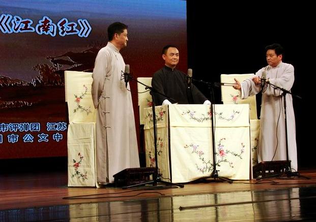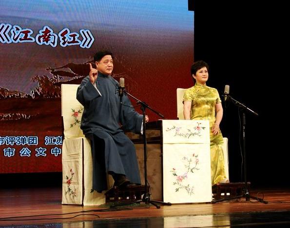 7月5日下午在苏州市公文中心剧院,为纪念抗战胜利七十周年,苏州市评弹团联合江苏省评弹团共同演出苏州评话《江南红》专场。