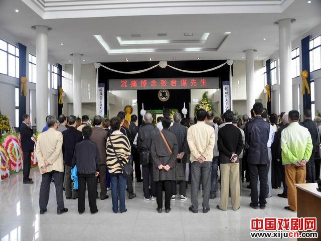 张君谋先生的生前好友俞中权撰写的“蜻蜓折翼 书坛于今留遗帙 ;明珠蒙尘 曲苑千古怀斯人”的对联悬挂大厅两侧,张先生的遗体安放在鲜花丛中。苏州市评弹团团长、苏州评弹学校校长孙惕致悼词,其子张建初致答词。来自江浙沪的亲朋好友近百人到场送别张先生。