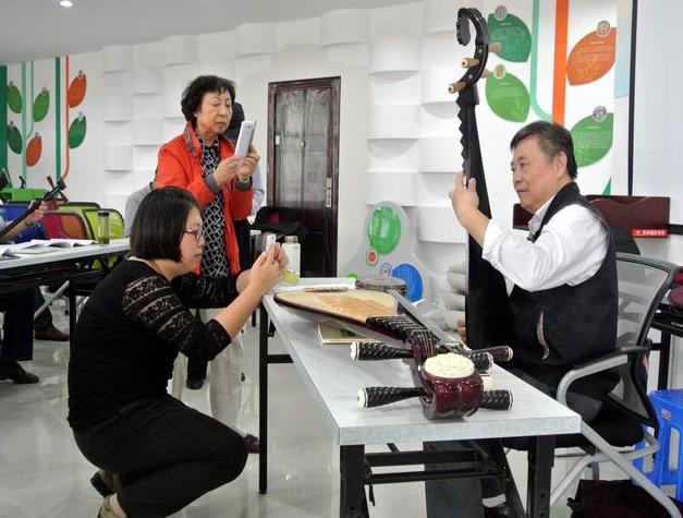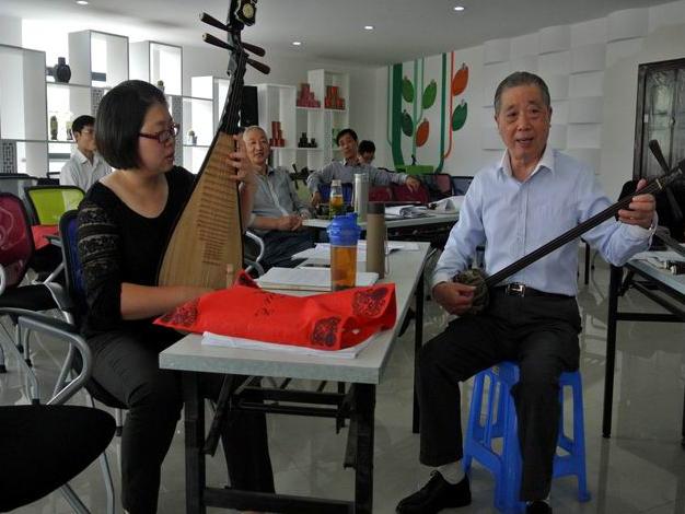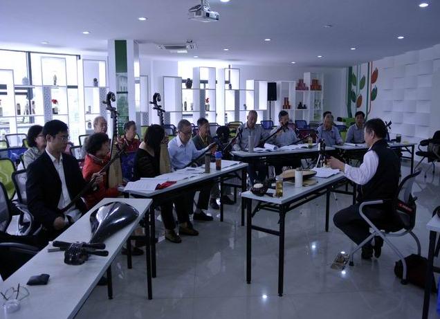 这次上课,除了复习以前教的快蒋调唱段《白蛇·上金山》;慢尤调唱段《梁祝·送兄》;丽调唱段《罗汉钱·回忆》;王月香调唱段《双珠凤·公堂》外,根据学员的要求,主要学快蒋调、慢尤调、丽调、王月香调、沈调、薛调、严调、徐调、杨调、陈调的三弦、琵琶上下呼的弹奏指法。很多学员如获至宝地用手机把它拍摄来,并准备制作光盘。大家感到收获很大。
