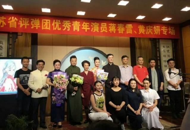 1994年,蒋春雷、黄庆妍两位拜袁小良、王瑾为师,学说《孟丽君》,之后再学说《梅花梦》、《三个侍卫官》、《钱塘奇缘》等长篇书目,也是说是龚华声的第三代传人。《玄妙观》这首开篇是龚华声自创,擅长运用乱鸡蹄曲牌弹唱,其特点一口气唱得快而不乱,快而不断,体现其艺术要求与特征,目前评弹界的一些演员要唱“乱鸡啼”很担心唱不好,甚至拒绳弹唱。而龚华声这三代传人要唱乱鸡啼都是拿手好戏,所以专场笫一只节目就由蒋黄档带领三位师弟领唱,轮唱,齐唱乱鸡啼曲牌《玄妙观》这首现代开篇,固然不同非凡,唱开了专场。