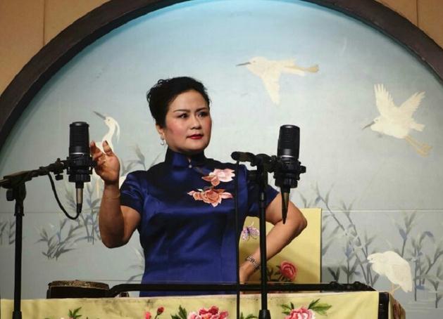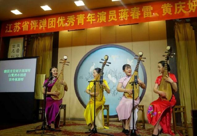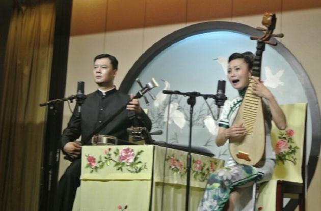 袁小良、王瑾今年也50多岁了,他们的特点特别喜欢年轻人学习评弹,他俩至今共收十位传人,而且大部分活跃在评弹界,刚场出场三位男学生,接下来由王瑾的四位女学生同唱曲牌小调,为师兄师姐接接力,其中霍婉璐低声吟唱取得良好效果,引起了听众欣赏注意,反映了一点,如何唱好是个技巧问题,更主要在于运用恰当。