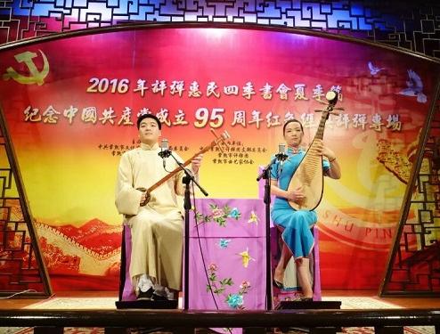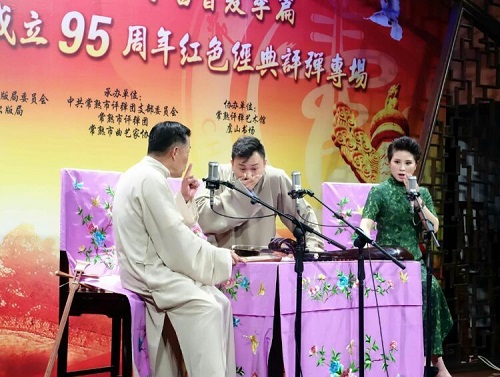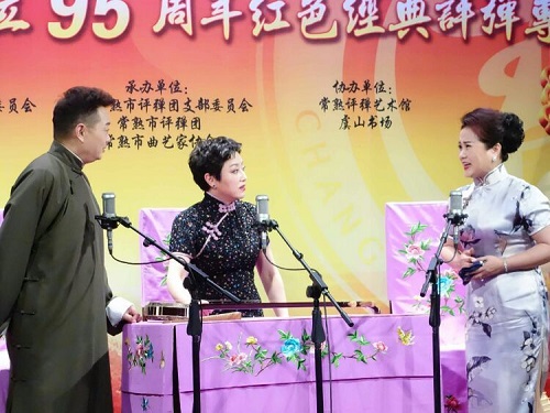 七月八日下午,常熟评弹团在虞山书场举办纪念我党诞辰九十五周年的红色评弹专场,集常熟、苏州、上海三地当今评弹界实力派演员,非常有号召力,加之天公作美以表祝贺。把整个书场挤得滿滿的,座无虚席,约有380位评弹听众,盛况空前,与最近无锡、苏州两地举办的红色评弹专场相比更为可喜。
