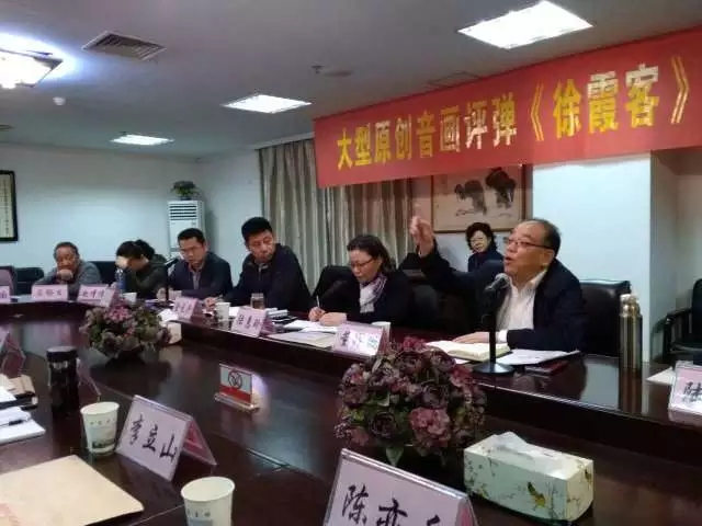 中国曲协分党组书记、驻会副主席董耀鹏,中国曲协苏州评弹艺术委员会主任陆军,江苏省文联书记处书记、党组成员刘旭东,无锡市政协副主席、无锡市文联主席金元兴、《曲艺》杂志社主编宋洪发,省委宣传部文艺处副处长邵小祥,江苏省曲协驻会副主席、秘书长芦明,中共无锡市委宣传部副部长、市文联党组书记陆惠玲,无锡市文联专职副主席董晓, 无锡市文广新局副局长过旭明等领导和专家学者出席了论证会,大家对大型原创音画评弹《徐霞客》的文本基础给予了充分肯定,对音画评弹的样式创新给予了高度评价,同时也对文本的修改提出了不少衷恳意见。