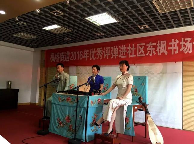 据悉,今年枫桥街道共邀请评弹名家进社区两次,9月8日在马涧丽仙书场的演出也得到了居民的一致好评。枫桥街道是“评弹之乡”,老百姓喜爱评弹,街道每年都会特邀评弹名家走近老百姓身边,这种“政府买单,群众受益”的文化惠民活动每年都在举行,枫桥街道为老百姓呈上了一次又一次文化盛宴。枫桥街道十分重视文化载体建设,分别在东中西开设三个书场,今年10月,位于枫桥中部的康佳书场将正式投入使用。