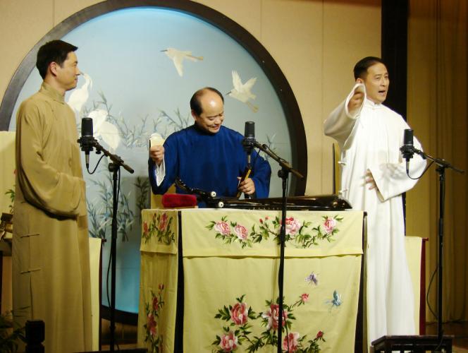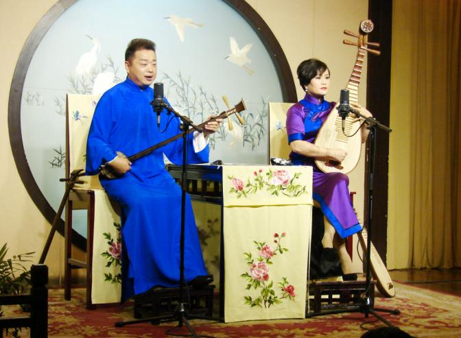 毕竟台下生活中是伉俪夫妻,难得有个剧本让两人吵吵架甚至是戏里感情撕破脸。看着台上两人一开始的压抑的对话,到最后的戏份互飚;感情的把握,气氛的升温;全新的唱腔,逐字逐句推敲,难度层层推进,腔随情转,情随书走;或是如泣如诉,廻肠九转;或是大气磅礴,一泻千里;三弦琵琶的弹奏更是为人物的感情、气氛的升华起了烘云托月的作用。用一句“大珠小珠落玉盘”已无法形容现场的感受,不知怎的,脑海中会浮现出捷克钢琴家马克西姆演奏的《野蜂飞舞》······。