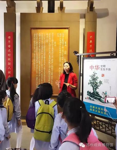 在交流活动后,我馆徐青老师带大家参观了评博,为大家讲解了评弹的文化和历史。少儿评弹团的孩子们与“聆弦谈乐”工作室的小姐姐们度过了一段愉快的评弹时光。