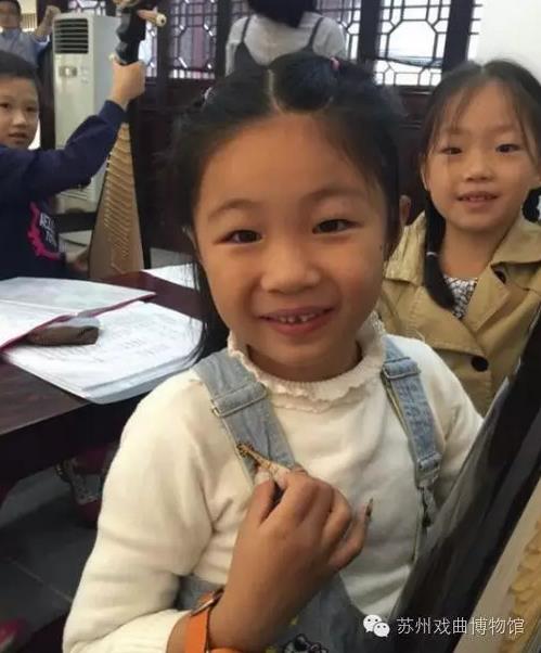 孩子们之间聊得很开心,小姐姐们为大家弹奏了一曲《茉莉花》,还送了琵琶型的胸针作为小礼物。在交流活动的同时,建立了一段“评弹友谊”。