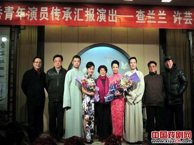 演出现场,她们的两位老师蔡惠华、邢晏芝(请邢晏春代表)都来听书,主持人请蔡惠华、邢晏春上台讲话。他们用查、许两人在评校刻苦学习的生动具体的事例说明“梅花香自苦寒来”。 邢晏春概括查、许成功之路为:天赋,刻苦,勤奋,才有今天的成就。两位学生向两位老师献花。蔡惠华把自己画的两幅花卉赠给两位学生,以示庆贺。