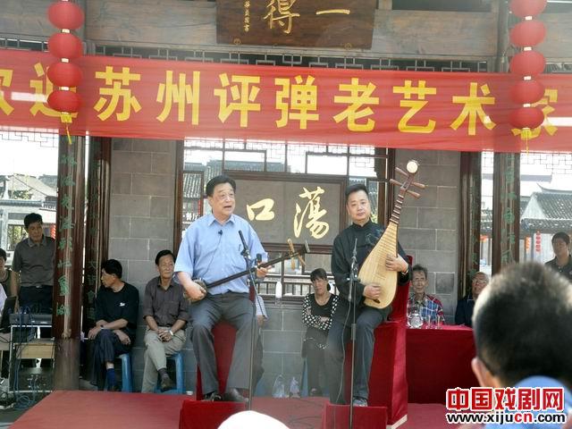 10月12日那天,晴空万里,江南水乡古镇荡口蓝天碧水,倍添了老年人愉悅的心情。当他们一蹅上这片故土十分亲热,因为这里曾经他们常来这里演出的书码头,留下了难忘的记忆。可惜现已难寻昔日的书场,这里变化太大了,变美了,变秀了。那一天的荡口古镇格外热闹,那里的荡口当地人也要亲闻一下久违了的评弹艺术,更有袁小良、王瑾、金丽生、周明华等评弹响档出场赢得台下观众的阵阵掌声。