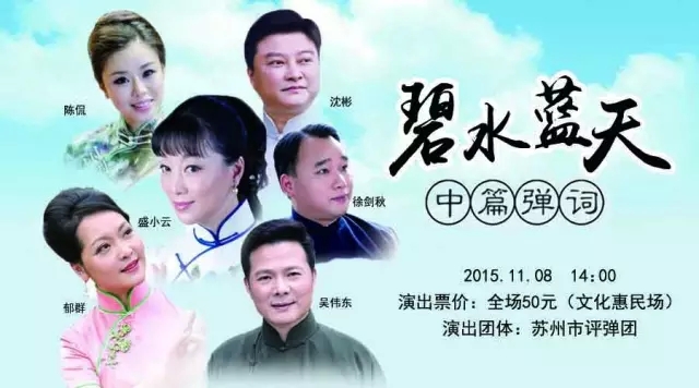 本周日,由我国著名评弹艺术家盛小云带班的苏州评弹团将走进太仓大剧院,献演中篇弹词《碧水蓝天》。《碧水蓝天》是苏州市评弹团参加第六届中国苏州评弹艺术节的参演节目,分为《惊爆》、《闯穴》、《落网》3个曲目,讲述了在环保系统干部身上发生的以党风廉政建设教育为主题的现实故事。