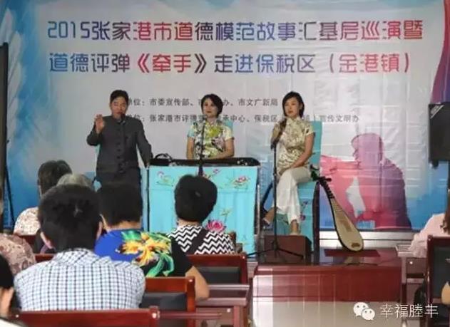 2015张家港市道德模范故事汇基层巡演暨道德评弹《牵手》走进保税区(金港镇),今天巡演来到了塍丰社区,吸引了社区内的众多居民前来观看。评弹《牵手》以凤凰镇的真人真事为故事原型改编而来,以新颖的评弹形式把道德故事传播到千家万户,收到了听众的热烈好评!