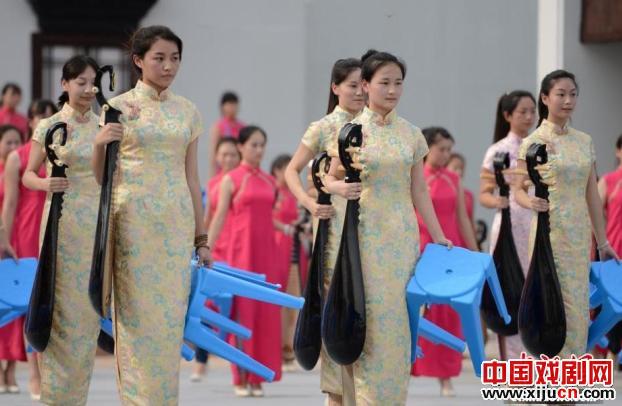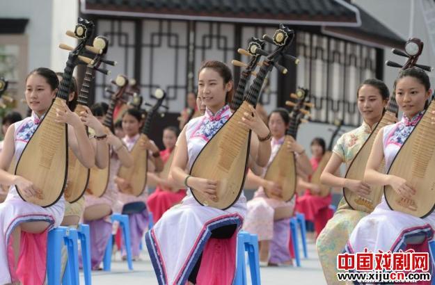 9月2日,两位评弹演员和苏州评弹学校的学生们彩排节目。当日,“苏州月·中华情”2014年中央电视台中秋晚会在苏州太湖之滨紧锣密鼓地彩排中。据本次晚会总导演周晓岚介绍,今年晚会创作中运用了很多苏州元素,昆曲、评弹都将一一融入节目,舞台背景和布置上,也会结合小桥流水、粉墙黛瓦的苏式风格。她表示,苏州的文化艺术也代表了中国传统文化艺术,它是一种符号,希望通过这个符号来放大中国传统优秀文化,让全球的华人在月明团圆的日子里,感受到我们自己文化的博大精深。