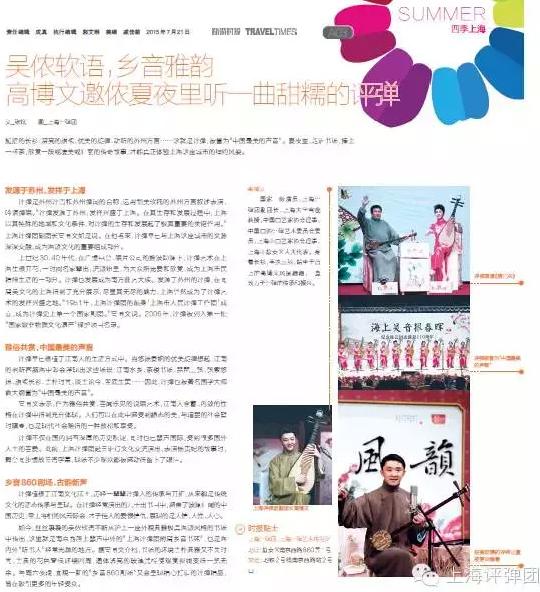 上世纪30、40年代,在广播电台、唱片公司的推波助澜下,评弹艺术在上海生根开花,一时间名家辈出,流派纷呈,为大众所宠爱和欣赏,成为上海市民精神生活的一部分。评弹也发展成为南方曲艺大族。发源于苏州的评弹,在同属吴文化的上海得到了充分展示,尽显其无尽的魅力,上海俨然成为了评弹艺术的发祥兴盛之地。“1951年,上海评弹团的前身‘上海市人民评弹工作团’成立,成为评弹史上第一个国家剧团。”高博文说。2006年,评弹被列入第一批“国家级非物质文化遗产”保护项目名录。