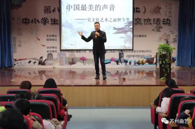 为弘扬文化自信,传承评弹艺术,苏州市曲艺家协会主办了一系列丰富多彩的评弹艺术进校园活动。2017年12月22日,苏州市曲艺家协会主席、中国苏州评弹博物馆副馆长、国家一级演员袁小良先生让“中国最美的声音”走进了相城区御窑小学,为到场的300余名学生、老师和家长进行讲座《中国最美的声音——吴文化艺术之前世今生》。