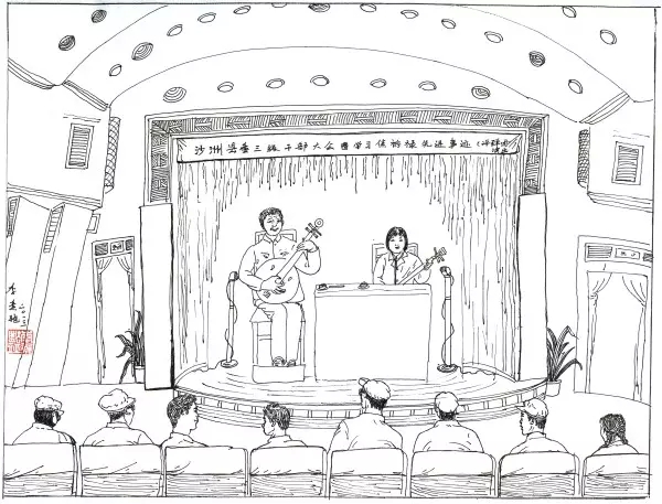 12月21日,沙洲县人民评弹团成立大会在位于青龙桥的县文化馆会场举行,场内座无虚席,十分热闹。副县长张雨霖宣布沙洲县人民评弹团正式成立,希望19名演职员工努力学习、创新说新、深入基层、全心全意为工农兵服务,同时要求全县各行各业支持评弹团的工作,使大家备受鼓舞。