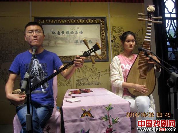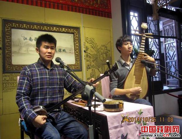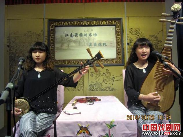 评弹学校的年轻人一上口就是两段唱,他们把这场活动作为锻炼的好机会,参加者都是四年级传承预备班的学生,他们是立志从事评弹事业的年轻人。祁晔先唱两段蒋调《家》《哭容》,十分动听,嗓音好韵味浓;刘佳盟接着也唱了两段周云瑞风格的《夜读》和《方卿见娘》,稳中有情、味道十足;高思静的薛调接唱《见娘》铿锵有力,两人合奏的三六紧凑明快,配合默契;双胞胎姐妹吴玉君、吴玉琪侯调《莺莺拜月》婉转动听,别具一格;还有柳明杰的《剑阁闻铃》中气足,底音厚,他们的演唱充满了青春活力。
