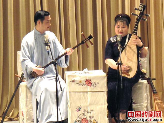 第二只节目是陆嘉伟、朱琳出场,他们二位是当年的“十三太保”,1997年进团,从进团后一直拼档到现在,六、七年了,没拆过档,小字辈中小有名气,是张振华、庄凤珠的学生,张振华、庄凤珠堪称是老弹王;第一代学生郭玉麟、史丽萍是大弹王;陆嘉伟、朱琳便是小弹王,老弹王小书大说的风格得到继承,所以在台上的表演还显出优美的身段。另外张振华还收过苏州吴中团的钱国华、陈琰。其实钱国华仰慕张振华数十年,一直暗中学张振华,一直要拜张振华,最后遂了心愿。