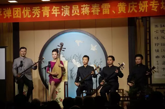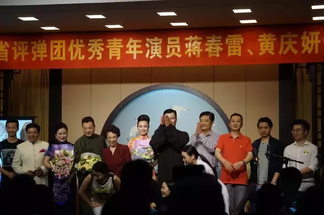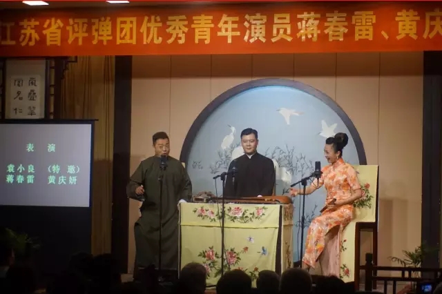 2016年5月31日晚七点一刻,由江苏省演艺集团评弹团召开的评弹《春语妍韵 江苏省评弹团蒋春雷、黄庆妍专场》在苏州第一天门10号光裕书场隆重开幕。出席专场的人员有江苏省评弹团团长姜永春,省政协昆评室副主任、苏州评弹博物馆副馆长袁小良,评弹团"艺委会"主任汪正华等。