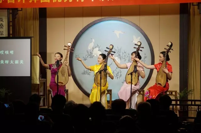 随后的评歌联唱,由特邀嘉宾霍婉璐、梅梦荻、王婵钦、陈馨怡四位美女联合倾情表演,评弹的风采一览无余,获得底下观众的不断掌声。