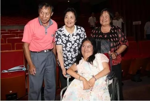 全国道德模范钱月宝(后中)和“中国好人”钱敏丹一家在道德评弹展演现场 图片来源:常熟市文明办