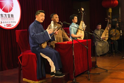 4月7日,作为2015上海市民文化节春季活动之一,上海评弹团演出的原创评弹系列新篇《四大美人》在上海黄浦区淮海中路社区文化活动中心开演,吸引了近200名评弹书友及社区评弹老听众前来免费观赏,一睹风采。