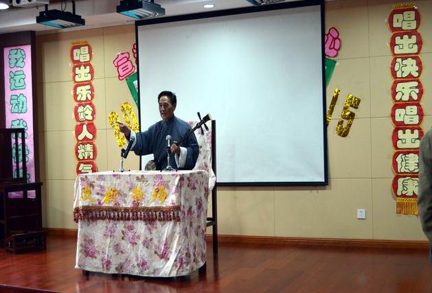 吴江滨湖乐龄公寓的老人们,对曲艺情有独钟,无论越剧、锡剧、沪剧还是评弹,在这里都有一批热情的粉丝。他们爱听、能品,相当多的人还能哼哼唱唱。评弹对于这里的爷爷奶奶们来说是一份来自年轻的记忆,唱腔中或委婉缠绵或慷慨激越的声韵,诉说的一个个耳熟能详的故事,会因唤起爷爷奶奶们自己青春年少的回忆倍感亲切。公寓里的老人平均82岁。对他们来说出趟门,到书场听档书不容易。平时只能靠看电视,听收音机,过把瘾。在公寓众多的活动中,“评弹日”本来也是其中的一项。但由于种种原因,时断时续,令老人们好生遗憾。春节过后,院方在部署上半年度工作时,决心想老人所想,爱老人所爱,把中断多月的“评弹日”活动恢复起来,坚持办下去。在有关各方的关心支持下,姑苏区友新文联戏曲协会、钱红志会长团队闻讯前来,热情地表示愿送书进院,为公寓老人献爱心。由该团钱红志、方铸德、吴蝶花、王静华、滕友珍、王翔(6位)分别演唱《梦蝶》《金枪传》《玉连环》《十八相送》。