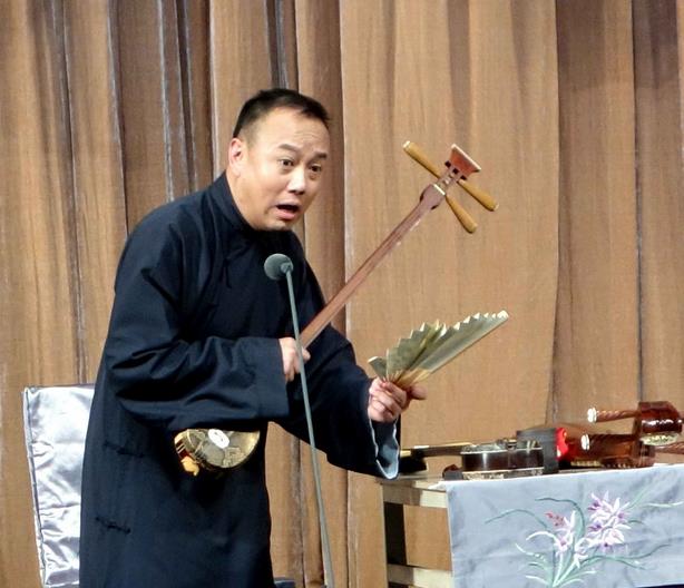 七月一日,上海逸夫舞台犹如是个喜庆日子,前厅是摆满各界朋友的花篮以示祝贺,一派喜气洋洋。演出前著名弹词艺术家邢晏芝作了热情简明祝贺词,为马张双档壮胆激励,指明评弹艺术修成正果长篇才是根源,并亲切呼吁观众朋友支持年轻的一代,多来听书给他们提建议找不足,盼望他们不断历练早日成为新的正真评弹名家,体现了老一代评弹前辈对下一代传承人的关爱。马志伟、张建珍在老师的鼓励声中以一曲开篇《相见恨晚》和八百观众见面开场,并在一片真情自发的热烈掌声中开说长篇弹词《沈万三》。马志伟说表清脫松驰,噱头蕴藉而脫俗,娓娓道来引你入书。张建珍本就气质出众,音色甜润,而今天的媒婆彩旦角色一改婉约形象惟妙惟肖让人刮目相看。他俩配合默契掌控有度,人物传神,悬念吊足。台下观众不时发出会意的笑声,不时又点头示意,不时又掌声雷动,第一天长篇演出成功了,开了个好头,自然由衷而热烈的掌声与鲜花送给了演唱者。