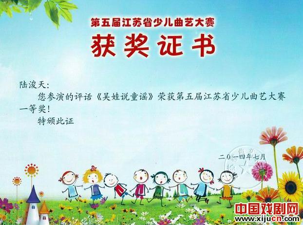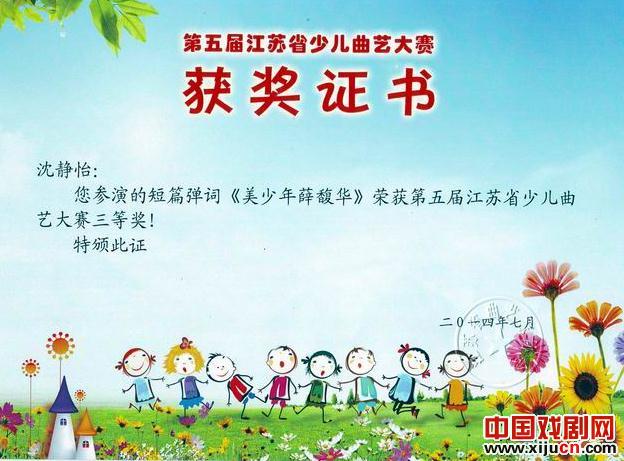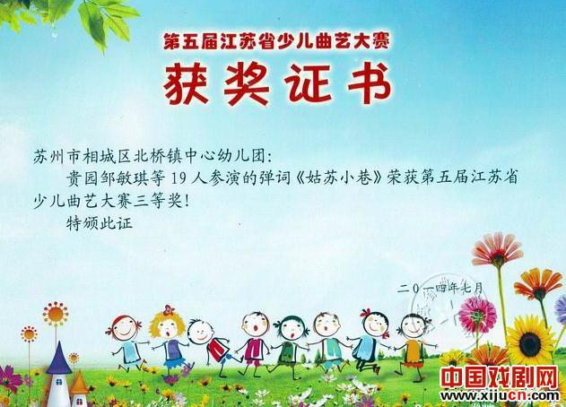 日前,在靖江市举办的第五届江苏省少儿曲艺节上,我市选送的:吴江区公共文化艺术中心、吴江松陵小学评弹小组唱《吴江三道茶》荣获节目奖(作者:周明华、辅导老师:顾之芬、许荣凤、任丹;高新区镇湖中心小学评话《吴娃说童谣》荣获表演一等奖(辅导老师:范明);苏州市少儿艺术团弹词开篇《莺莺操琴》大赛二等奖(辅导老师:顾之芬);相城区北桥镇中心幼儿园弹词《姑苏小巷》荣获大赛三等奖(辅导老师:李红);常熟市辛庄中心小学弹词《少年薛馥华》荣获大赛三等奖(辅导老师:孙向红)。
