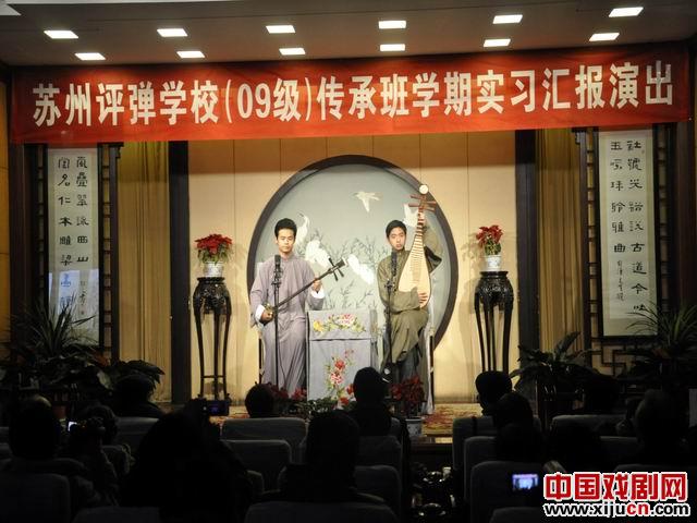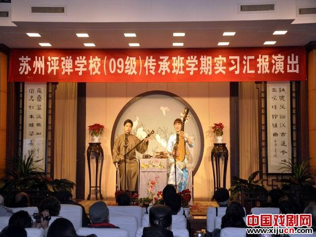 苏州评弹学校2009级传承班本月十四、十五日同时在光裕书厅和梅竹书苑进行教教节目汇报演出。本届传承班共有18位学生,为了进一步提高教育质量,校团联动后,学校领导尝试新的教学方法,根据学生不同特点分成3个小组,请来了秦建国、蒋文、高博文、郑缨、毛新琳、周慧等评弹界著名演员,分别传授长篇弹词《白蛇传》《珍珠塔》《秦香莲》《顾鼎臣》选回,取得了较好成绩。