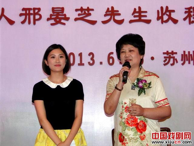 江苏省演艺集团团长姜永春致辞,学生程可向邢晏芝先生行了拜师礼,程可和邢晏芝分别发言,弹词表演艺术家邢晏芝刚刚获得“中华第二届非物质文化遗产传承人薪传奖”,现又喜收爱徒。她的一番激情洋溢的发言,感动了全场。