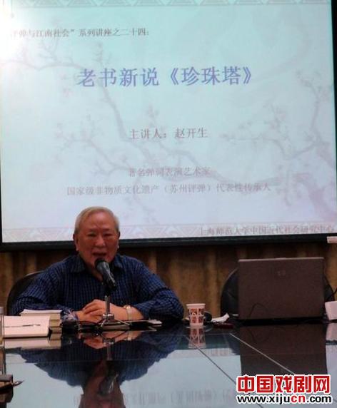9月22日,上海师大中国近代社会研究中心评弹研究室主办的“评弹与江南社会”系列讲座之二十四《老书新说<珍珠塔>》,如期举办,担纲本次主讲的是著名弹词表演艺术家赵开生先生。唐力行教授主持讲座,该校评弹研究室全体师生聆听了报告。