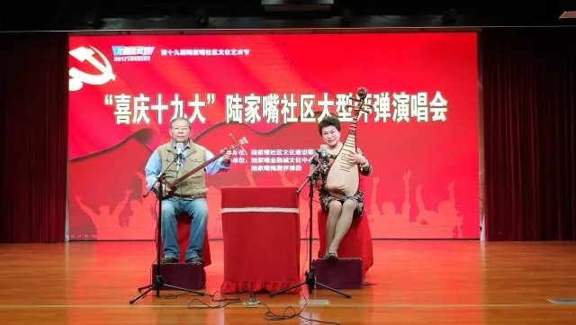 为庆祝“十九大”的胜利召开,陆家嘴街道梅园评弹队自编自演了讴歌改革开放以来祖国繁荣发展为题材的《喜庆十九大》评弹系列曲目,将传统的评弹文化与群众的文化需求结合起来,用评弹的方式演绎了人民群众对党的十九大胜利召开的祝愿,唱出对党和祖国的热爱、对辛福生活的赞美以及积极学习十九大会议精神的热切盼望。应广大戏迷的要求,还演出了《新木兰辞》、《枫桥夜泊》等传统曲目,让观众们过了一把耳瘾,为陆家嘴社区居民们带来了一场精彩的评弹盛宴。