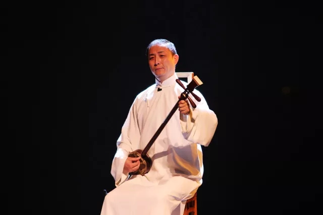 随着主题曲《回眸》的响起,大幕缓缓拉开,演出正式开始。用“精彩丰呈”这个词来形容昨晚的这场艺术“盛宴”,毫不夸张。整场演出包括了二十多段曲目,其中为北京场演出增加的流派联唱环节更是集中展示了50年代上海评弹团建团初期各个流派的经典之作,可谓百花齐放;还有蒋月泉生前的录音录像,让观众们重温大师生前对于评弹艺术高峰的不断探索。紧随时代变迁,蒋月泉一生的艺术生涯诞生了许多标志性的作品。无论是被认为蒋调诞生之作的《离恨天》,还是经典开篇《战长沙》、《梅竹》,或是凝聚了毕生精力的长篇弹词《玉蜻蜓》、《白蛇》,以及响应时代号召而成的中篇弹词《一定要把淮河修好》,每一个时期的作品,都反映了蒋月泉先生对艺术孜孜不倦的追求。演出分为数个篇章——《回眸》、《追风》、《逐日》、《听泉》、《观海》、《百年》由活跃在今日舞台上的评弹名家演绎,全面展示蒋派艺术在各个时期的风貌。