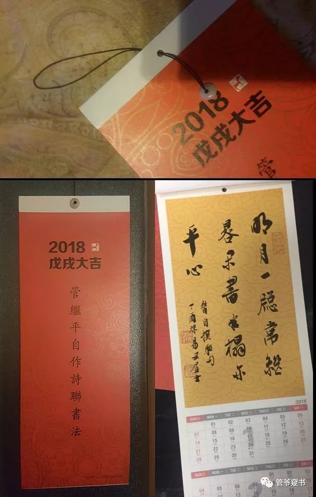 下图:2018戊戌大吉 “管继平自作诗联书法”挂历