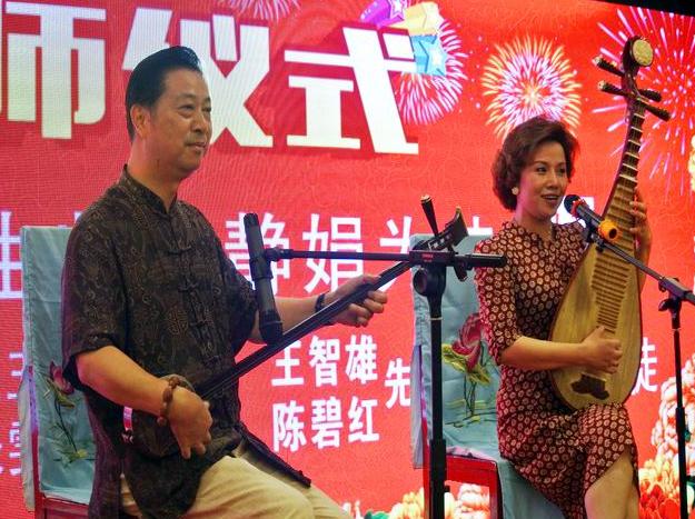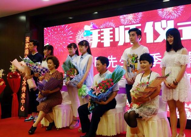 7月31日,张家港市评弹艺术传承中心在东方宾馆隆重举行集体拜师收徒仪式。在会场主席台,显示巨幅主题背景——拜师仪式,周希明先生收季静娟为徒暨季静娟先生收吴玉君、吴玉琦、杨仕君、张雯君为徒,王智雄、陈碧红先生收李肇燊,王丹怡为徒。