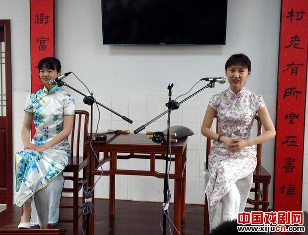 常熟市曲艺家协会的弹词演员应邀为揭牌仪式举行祝贺演出,首先登台的是金怡晨、徐楚凡,对唱一曲蒋俞调经典名段《赏中秋》,接着由徐楚娇、薛桃弹唱短篇弹词《相约星期二》,四位青年演员刚刚踏上书坛,说表弹唱虽显稚嫩,但演出认真投入,得到听客赞赏。担任送客的是曲协主席、评弹团团长陆建华,单档弹唱《落金扇》选回《老京师》,他的说表稳健老辣,书中阿福阿寿两个脚色起得活灵活现,把《老京师》这回闹剧说得妙趣横生,令人捧腹。