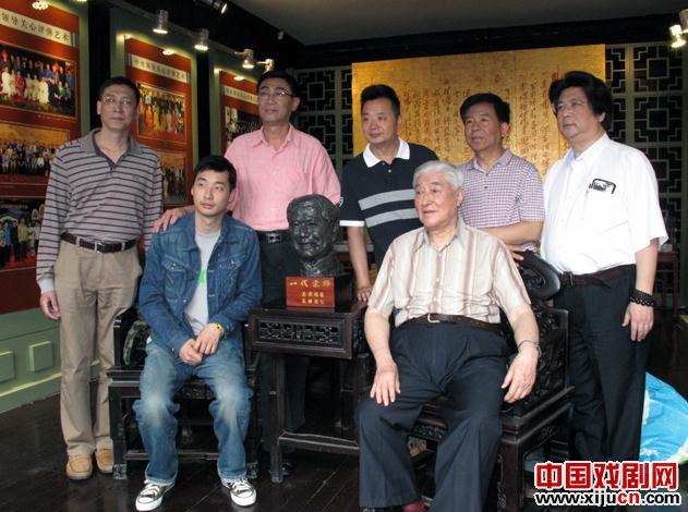 前排雕塑者高曠寓及吴宗锡先生,后排中三位王其康、袁小良、殷德泉,另二位也收藏专家、评弹爱好者、 护送者