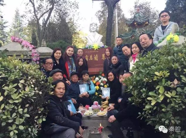 “耳听得谯楼上二更四点……”,肖先生女儿肖丹,弟子李淑芳,薛学慧,王萍,陈妙华弟子吕秋娟和从全省东西南北等远地专程赶来的戏迷纷纷上前献花,敬献祭品;肖先生的七十余岁老粉丝"段戏迷"现场颂诗祭奠;易俗社著名戏牌书法家刘东生老先生,为老战友点上一枝香烟拉起家常;肖派第三代传人:徐苑,罗兰,赵苗,任美娟深情地向肖先生清唱了"耳听得谯楼上二更四点"声音婉转悠扬,吸引来诸多乡亲和墓园工作人员驻足倾听。大家对老一代一代经典流派的传承,一代一代的发展感慨万分,看到秦腔一代代传人,看到肖派一代代传人,我想肖若兰先生在天之灵也一定含笑欣慰。让我们怀着对大师的追思和崇拜,祝福肖派艺术在李淑芳和其她肖派弟子的努力下,发扬光大,更上一层楼。