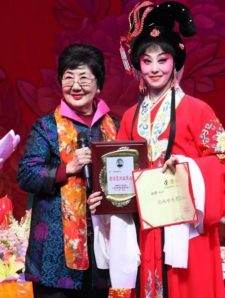 11月25日晚,由第24届中国戏剧“梅花奖”得主、国家一级演员张蓓领衔主演的秦腔《玉堂春》在省戏曲研究院剧场成功推出。这是张蓓摘得“梅花”沉潜六年后首次主演大戏,引起了业内专家和社会各界观众的广泛关注。当晚,台上的张蓓扮相妩媚俏丽,嗓音清亮甜美,身段雅致洒脱,表演准确清新,动情入微,极具舞台感染力。台下的观众凝神聚焦,专注于演员表演和剧情发展之中,掌声叫好声不绝于耳。演出后,专程赶来的全国政协委员、著名京剧表演艺术家、京剧大师荀慧生的关门弟子孙毓敏向张蓓授牌,正式将其收为徒弟,纳入“荀派”传人之列。