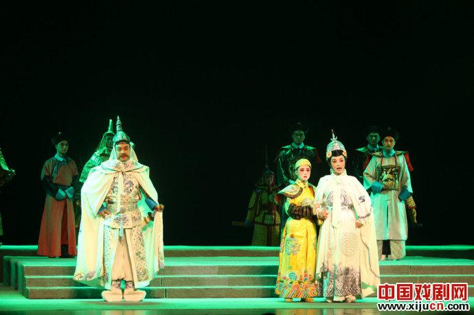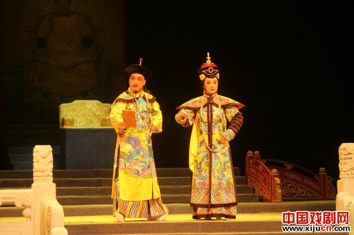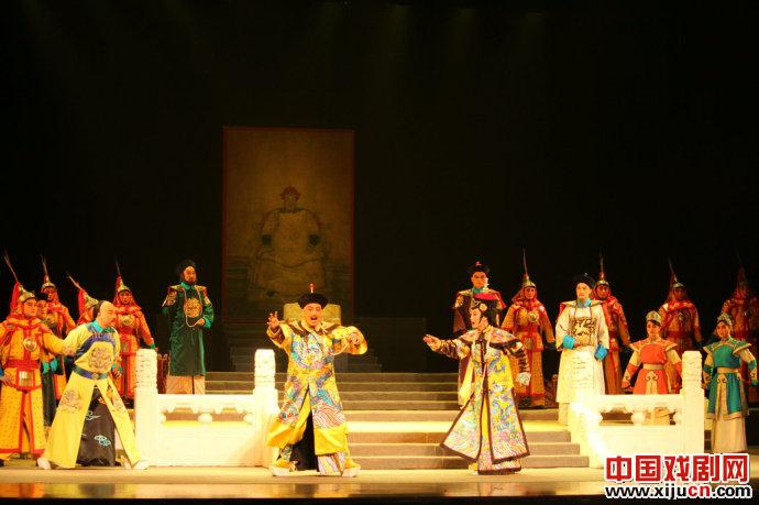 秦腔《庄妃与多尔衮》故事选取的是清朝皇太极驾崩后,清朝一时无主,多尔衮与豪格两大势力对皇位虎视眈眈,庄妃接受汉臣范文程建议,劝服多尔衮辅佐福临登基;多尔衮被情势所逼,暂且归顺,后出征中原,评定叛乱,攻入北京城,忽夺位野心又起,逼迫庄妃携眷迁都,又胁迫庄妃合宫下嫁;庄妃为稳固顺治地位,巧计击垮多尔衮势力,后多尔衮怒气出宫,被庄妃手下所害,庄妃与顺治稳坐大清帝位。看过编剧编过其它的几部戏,所以在看这部戏之前并没有对这部戏抱有太大的期望,但是出乎意料的是,编剧竟然把这个故事给完整的讲下来了,尽管这部戏还缺一种历史剧应有的特质(几乎近年编剧所创剧本的通病),但是对于编剧来说,已经实属不易,比起其改编名著的戏顺畅很多。不过话说回来,本戏作为新编历史剧,缺少一种视野,缺少对情节整体的审视,给人的感觉是为了讲故事而编故事,每个情节只是简单的提出问题后想法解决问题,兵来将挡水来土掩,而没有整体的一个主题预设,到底为了表现什么而去讲故事,看完这台戏后找不出这样的痕迹;另外,作为一部清朝的戏,本戏还缺少一种气魄,缺少清朝初期那种纵横捭阖,枭雄傲世的情怀,故事仅限于庄妃与多尔衮在帝位与情感上的纠葛。所以整部戏尽管台上演的很热闹,但是始终不能将观众带到这种剑拔弩张的氛围之中。其实,我认为在这部戏中,庄妃与多尔衮不能简单的谈情感,也不能一味的谈政治,而是应该着重表现庄妃在这二者之间的两难选择;同时对于多尔衮,不能只刻画出其夺位的野心,也得表现出其柔情的一面,否则这部戏只能陷入冷冰冰的政治争夺之中。最后选取的庄妃合宫下嫁这场戏,说服力不是很强,并且在这场戏中让皇太极灵魂再现比较牵强,尤其是皇太极称庄妃为其红颜知己的那些话语着实有些雷。